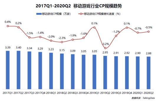 当用户陆续向着头部产品或者深度产品集中,移动游戏市场格局进一步呈现部落化态势,此前游击队式的“抄袭热门、“给内容换皮”开发模式,以及无法获得目标用户认可的轻度产品,会被市场大量淘汰。数据显示,移动游戏CP数量已经由2017年Q1的3.39万家下降至2020年Q2的2.88万家,2年半时间里,一共淘汰掉5千多家中小CP或独立开发者。
